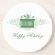 Elegant and chic Holiday Swirls Present Christmas Coaster in bright green featuring a nifty gift box and a lovely cascade of swirls. This sophisticated sandstone coaster would make a charming decorative touch around your home while it protects your tables. Easy to customise, simply add the personalised text of your choosing. Click on the "Customise It" button to find additional personalisation options.