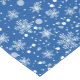 Holiday table runner is shown with a festive snowflakes print.