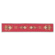 This Christmas holiday table runner is shown with a festive Christmas nutcracker print design.