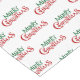 This holiday table runner is shown in White with a green and red Merry Christmas pattern.