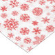 Holiday table runner is shown with a festive snowflakes print.