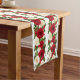 This table runner is shown with a lovely Christmas holiday red and white roses and berries print.