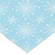 Holiday table runner is shown with a festive snowflakes print.