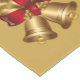 Holiday table runner is shown with a festive gold bells print design.
