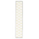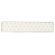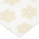 This table runner is shown with a white background colour and has a festive holiday gold snowflakes print design.