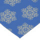 This table runner is shown with a Cerulean Blue colour background colour and has a festive holiday gold snowflakes print design.