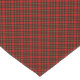This Christmas holiday table runner is shown with a red and green plaid print design.