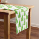 This Christmas holiday table runner is shown with a white background colour and has a festive green ribbon tree print design.