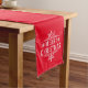 This table runner is shown with a festive holiday Merry Christmas snowflake print design.