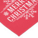 This table runner is shown with a festive holiday Merry Christmas snowflake print design.