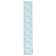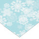 This Christmas holiday table runner is shown with a aqua background colour and has a festive Christmas snowflakes print design.