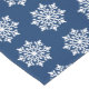 This Christmas holiday table runner is shown with a sapphire blue background colour and has a festive Christmas snowflakes print design.