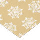 This Christmas holiday table runner is shown with a gold background colour and has a festive Christmas snowflakes print design.