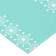 This Christmas holiday table runner is shown with a aqua blue background colour and has a festive Christmas snowflakes print design.