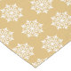 This Christmas holiday table runner is shown with a gold background colour and has a festive Christmas snowflakes print design.