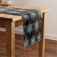 This Christmas holiday table runner is shown with a black background colour and has a festive Christmas white snowflakes print design.