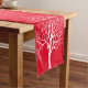 This Christmas holiday table runner is shown with a red background colour and has a winter white tree print design.