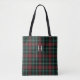 Festive allover print tote features a tartan plaid pattern in classic Christmas red and green, with your single initial monogram near the top.