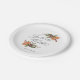 Rustic and modern holiday theme paper plate featuring watercolor illustration of winter greenery with orange and spice.