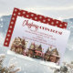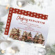 Nostalgic-look snowy holiday village with Santa Claus and a snowman "Christmas Open House" design. Great for personal or business open houses. All text is editable.