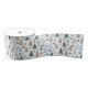 Grosgrain ribbon is shown in a holiday snowflakes and trees print.