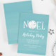 This design features a Christmas holiday party watercolor beach party invitation with a simple minimalist typography design, a blue turquoise water ocean sea, a stylish trendy calligraphy script text, a tropical coastal nautical seaside, a festive cute merry holiday invite, a whimsical fun holiday get together, with a sand dollar seashells shore coast design, great for beach house cottage home life, perfect for beach coastal holiday parties
