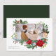 Holiday Winter Botanical Photo Personalised Card - Holiday Photo card from Ricaso - this Photo Personalised card is sure to be a hit with family and friends .. easy to add your own text and two photograph - Send your greetings in style this holiday with a personalised card featuring a stunning red roses and holly framing your own photo to the front and a coordinating colour to the back