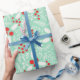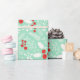 Red and light turquoise and white holly berries and mistletoe Holiday gift wrap - perfect for a modern Christmas statement