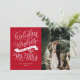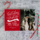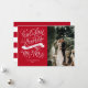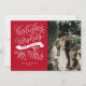 Celebrate your first Christmas as husband and wife with this festive holiday photo card. It features hand lettering on the left and space for a photo on the right.