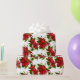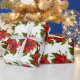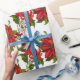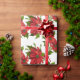 This holiday wrapping paper is shown with a white background and festive red poinsettias print.