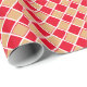 This holiday wrapping paper is shown with a Tan background and a diamond pattern in Red and a thinner White stripe.