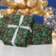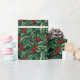 This wrapping paper is shown with a festive holiday holly red berries print.