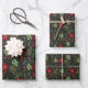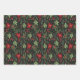 This holiday wrapping paper sheets set is shown in a holly poinsettia print.