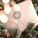Holiday wreath paired with small snowflakes encircling a Christmas greeting and a personalised family monogram.