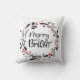 Holiday Wreath Merry and Bright Typography Cushion