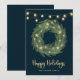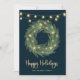 Holiday Wreath with Gold String Lights on Blue Card