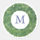 Stylish envelope or bag seal design with a single letter monogram inside a watercolor boxwood wreath.