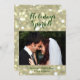 Deep green type on a sparkly background accents your photo on this gold holiday card.