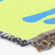 A quality printed throw has its advantages. This is a much finer weave throw than its loopier cousins, and though lighter, it is worth the investment for custom room accessorizing. The back is much prettier than the typical brown, and the fringe on the long sides very vivid, the selvage nicely done. Before photographing, I washed the throw in cold water, delicate, with a thicker woven throw the same size. On tumble dry low, this throw was dry in half the time as the other. This is a very practical quality if you use throws for furniture covers or to wrap up in frequently. The sleekness of the fabric makes it a great layer for accenting or protecting without the feeling of sitting on too much stuff. Perfect for napping or when you feel a light chill coming on. The color printing is beautiful and on this fabric, matched the design and color of my Photoshop image. This is an advantage for blending room fabrics and colors. The fringe on the short sides prints the colors from the design image and therefore varies from the side fringe. I streaked a white fractal line through the plaid pattern to give the illusion of weaving. This printed as crisp as an illusory thread, and put some white in the short side fringe, showing another advantage of print vs loomed- for artistic purposes, line lines, detail, and color integrity can be planned and preserved. My loomed throws have color limitations and more of a needlepoint texture. Print throws reproduce an exact image. The throw felt a little stiff straight out of the package, but this went away in the first delicate wash. Of course I searched the wash water for ink or bleeding and there was none.