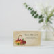 Offer your services as a certified holistic nutrition consultant for women when you give clients this girly health and wellness business card with a vintage vignette of a fruit basket fill with red and yellow berries.  Personalise by adding the name of the nutrition counsellor or dietician and her professional credentials. Add your QR code to the back, or you can remove the template images if you prefer. You can get your own unique quick response code by using an online code generator.