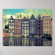 Houses are tilted, a unique characteristic of houses in Holland. Blue sky with clouds. Houses along a river.