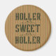 A fridge magnet for those who live the backwoods country life. "Holler Sweet Holler" text on vintage earth tones pinstriped background