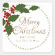 Classy Stylised Holly and Berries Circles Border in a colourful red, green and gold with Merry Christmas written in an elaborate embossed gold font. A dainty border of circles surrounds the perimeter. Change text below Merry Christmas to say "and a Happy New Year/2023" or LOVE FROM SANTA etc