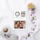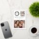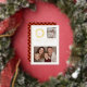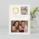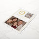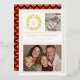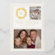 Elegant minimalist two photo foil design with a corner holly and berries wreath containing your monogram initial and your greeting, family name and the year in center. A small portrait-oriented photo adorns the top right corner and a larger landscape-oriented photo adorns the bottom of the design. All text and photos are fully editable and you can easily edit design back to choose from any color back background available. The gold tone pattern overlay on back is not editable, but can be resized or removed. Design by Holiday Hearts Designs (rights reserved).