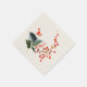Deep piney-blue green holly sprig with berries in shades of red modern watercolor napkin.