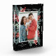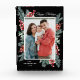 Elegant holiday photo block featuring your family photo framed by red watercolor holly berries with green pine boughs and foliage with a black background. "Happy Holidays" is displayed at the top in an elegant white calligraphy script. Personalise the botanical holiday photo block by adding your name and the year. Designed to coordinate with our Holly and Evergreen holiday collection.