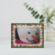 A holiday design featuring a pretty border of green holly and colourful lights mixed around it. A glow of soft red adds a nice touch. Add your picture and customise as desired. You may add a message on the back of the postcard if you choose.