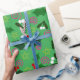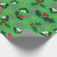A scattering of holly and mistletoe with some stars and spirals fill this holiday wrapping paper with botanical joy.
