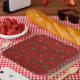 A larger size holly paisley pattern, with rich reds, so trendy for a fashionable feast! Designed by Cherie