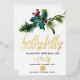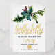 Elegant pine and holly sprig top this gold foil Christmas Party Invitation. Holly Jolly Christmas Party is written in pressed gold foil.